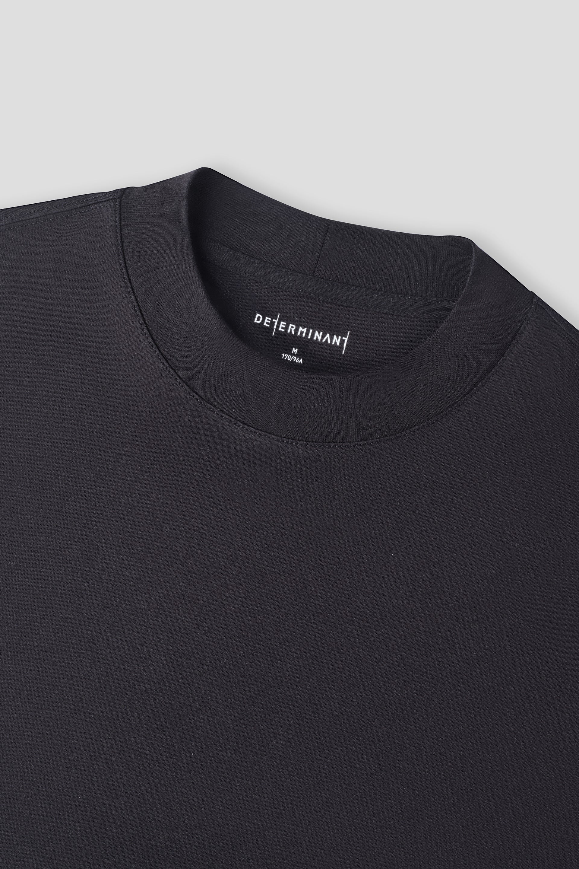 Merino-Blend Mock Neck Long Sleeve T-Shirt | Black BKFD01