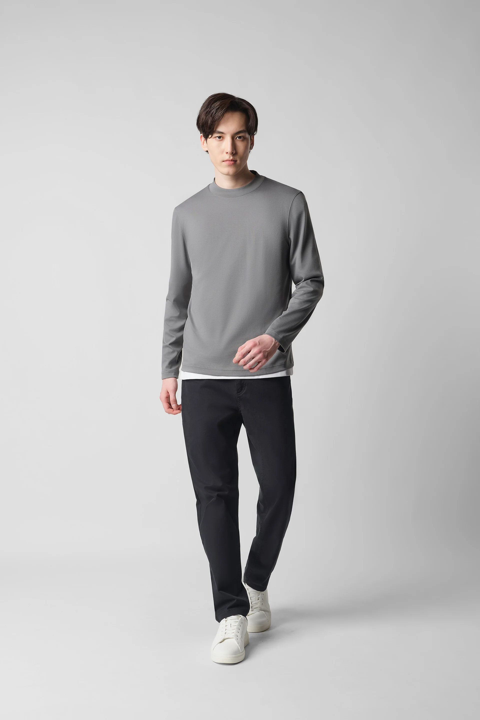 Merino-Blend Mock Neck Long Sleeve T-Shirt | Grey GYE145