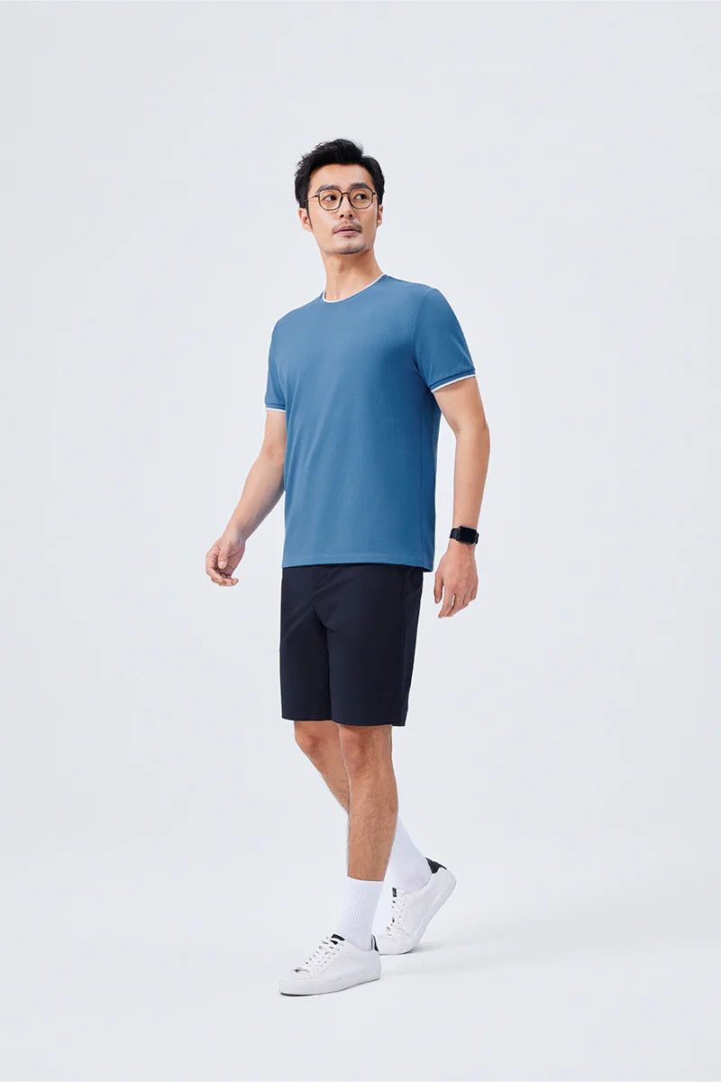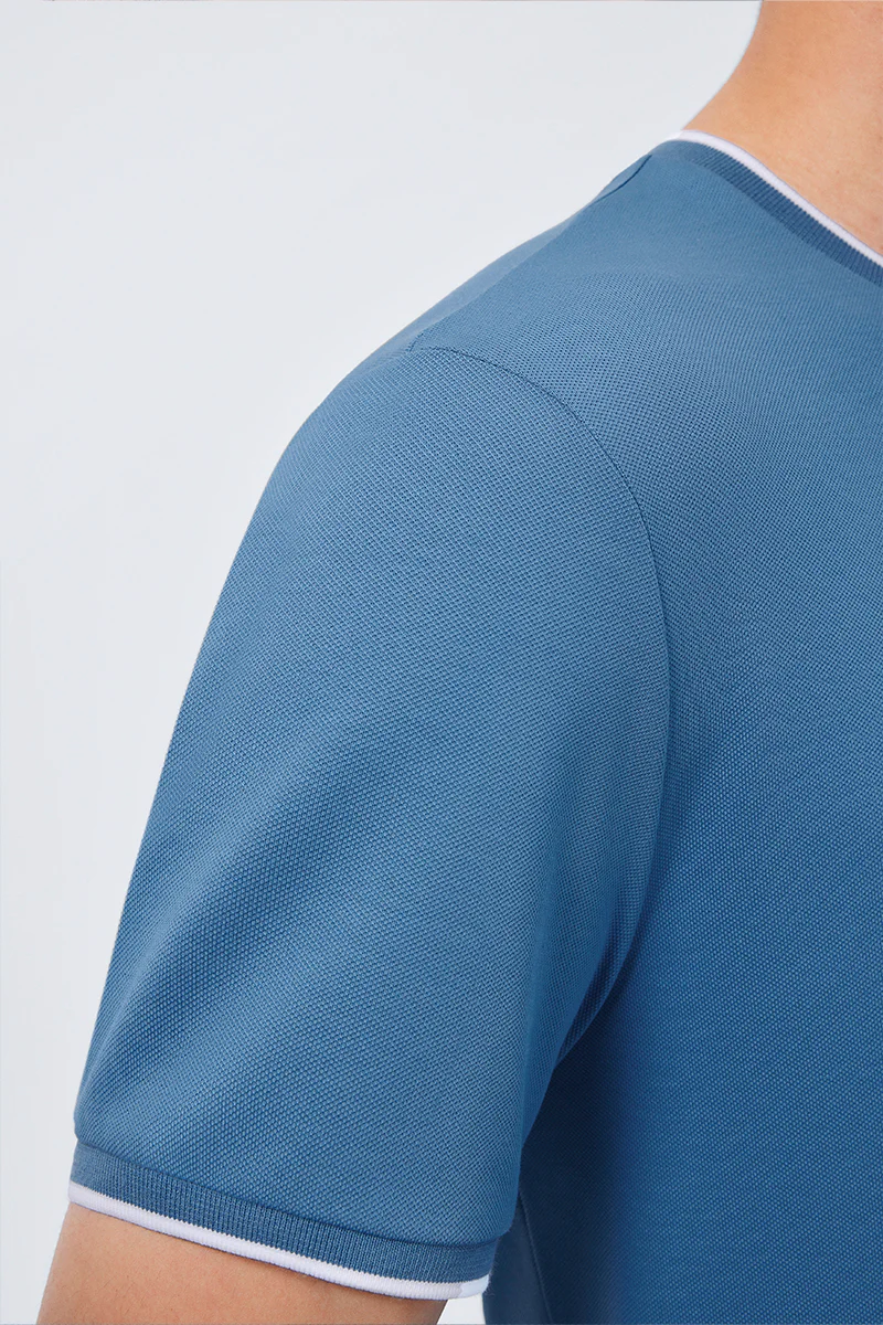 VISDRY™ Contrast Rib Crew Neck T-Shirt | Blue T7468U